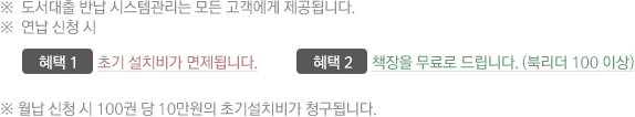 | 북리더 300 | 300권 | 월 40만원 | 연 480권 교환 |